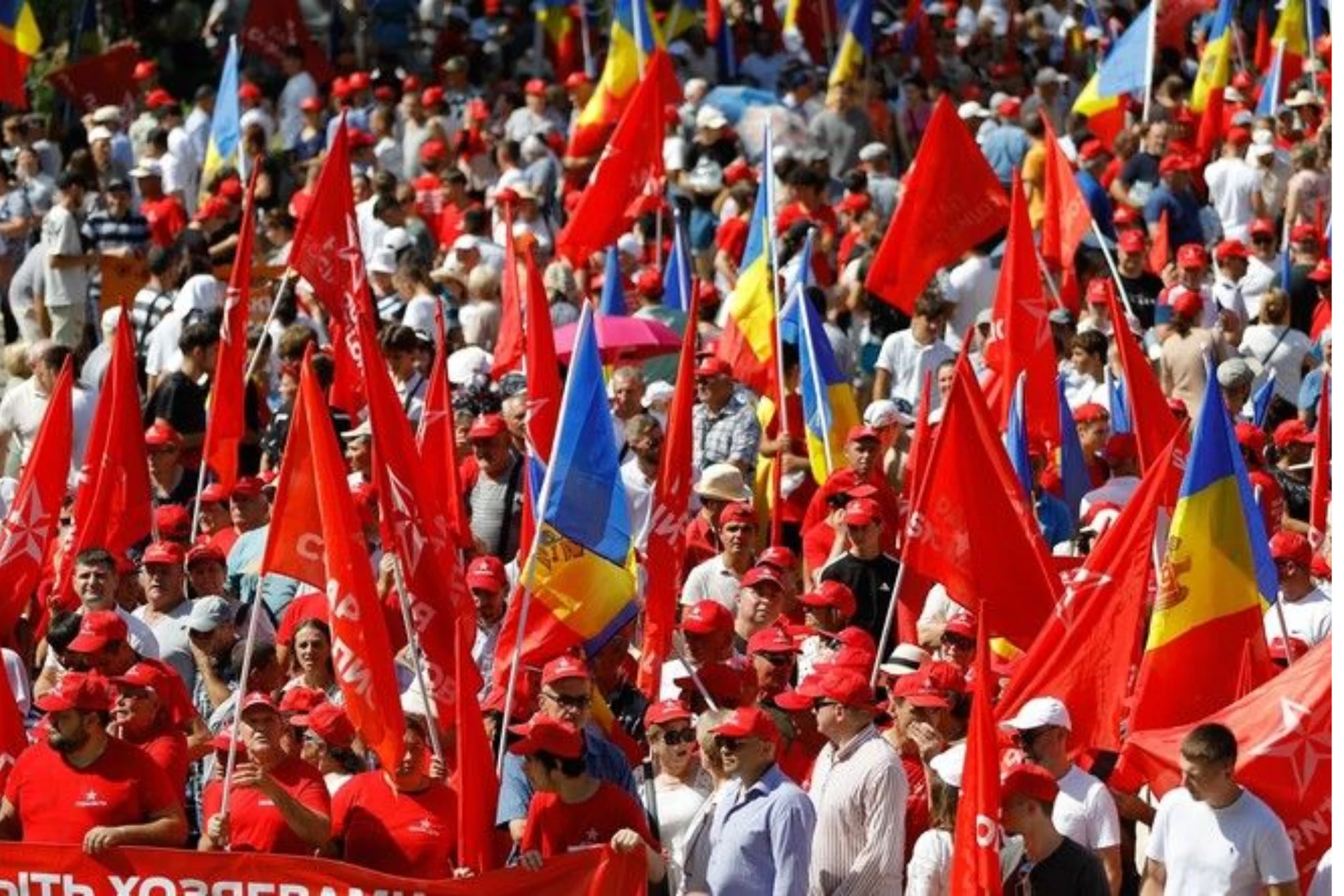 Le cortège, arborant drapeaux nationaux et étendards des partis, a convergé vers le centre de la ville en scandant des slogans tels que « Pour une Moldavie souveraine », « En unité, notre force », « La Moldavie a un avenir » ou encore « Pour la neutralité de la Moldavie ».